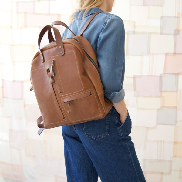 Käsitsi valmistatud nahast seljakott.