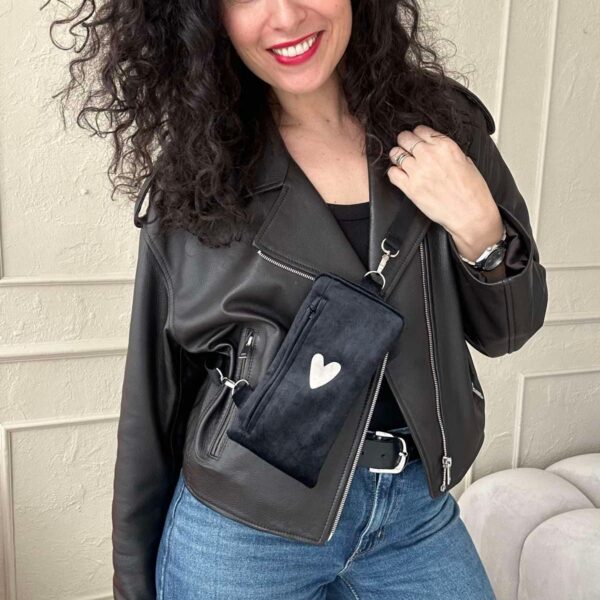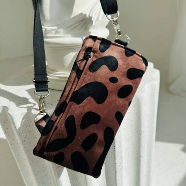 45€Kompaktne ja stiilne veluurist telefonikott, mis hoiab kõik vajalikud asjad käepärast. Suletav metallist trukiga ning esiküljel on väike lukuga tasku kaartide või võtmete mugavaks hoiustamiseks. Reguleeritava rihma abil saab seda kanda õlal või üle keha. Piisavalt mahukas, et mahutada telefon, pass ja mitu kaarti – ideaalne nii igapäevaseks kasutamiseks kui ka reisile.